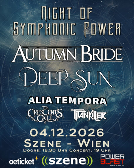 Ergänzt wird das Line-up durch Alia Tempora (Modern Metal trifft elektronische Elemente) sowie die beiden Wiener Bands Titan Killer und The Crescent’s Call als kraftvolle Eröffnung des Abends.